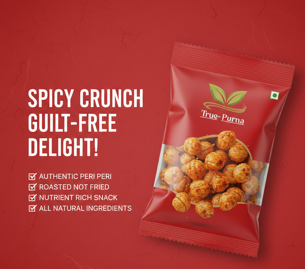 True-Purna ka Peri Peri Makhana hai ek perfect healthy alternative to fried snacks. Premium quality fox nuts ko lightly roast karke bold peri peri seasoning ke saath tayyar kiya gaya hai โ jisse milta hai crunchy texture aur spicy flavour ka perfect balance ๐ฅ