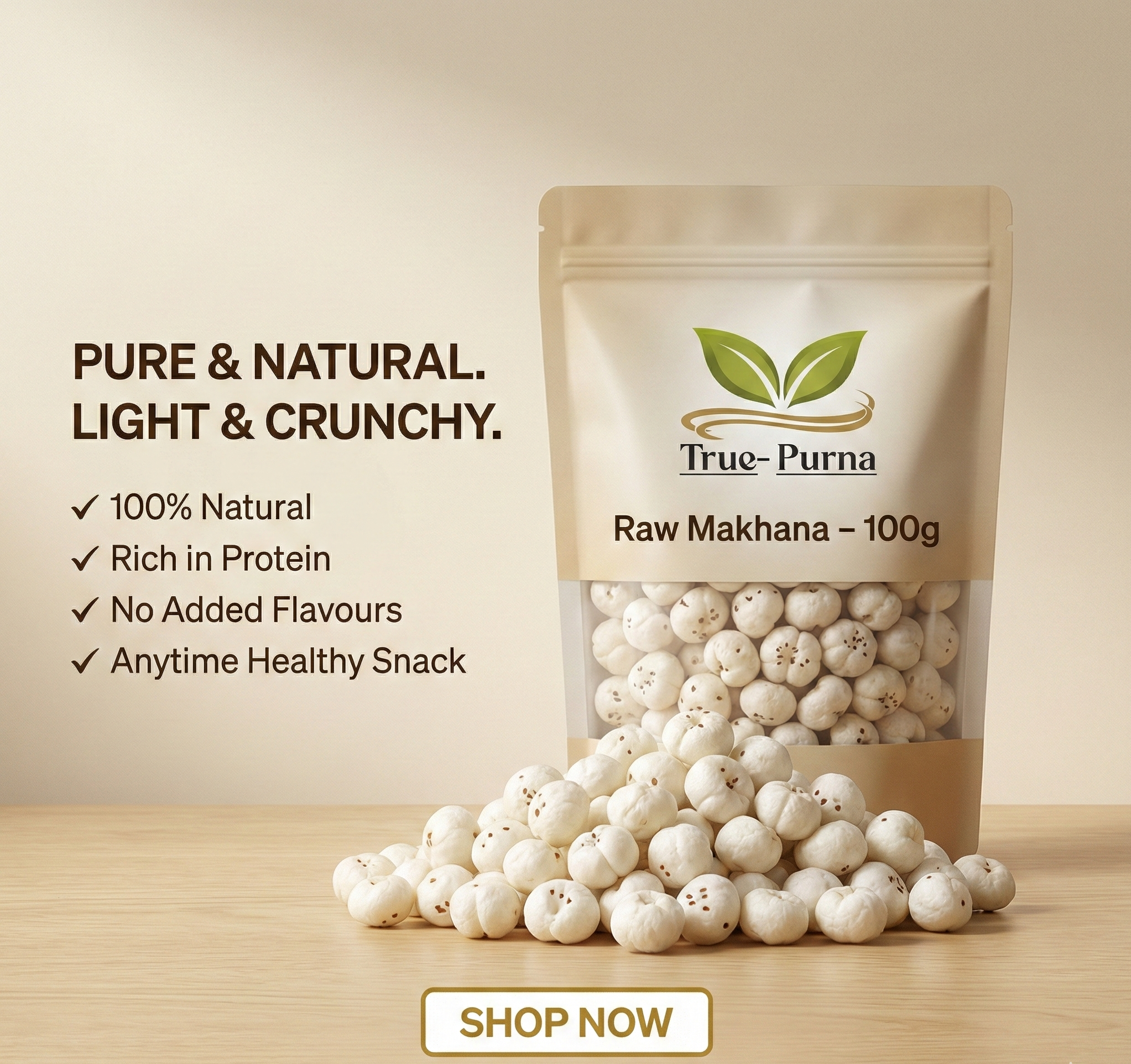 True-Purna Raw Makhana is sourced from premium-quality fox nuts and hygienically processed to preserve its natural goodness. In its purest form, makhana is known for being light, nutrient-rich, and easy to digest β making it a smart addition to a balanced lifestyle.